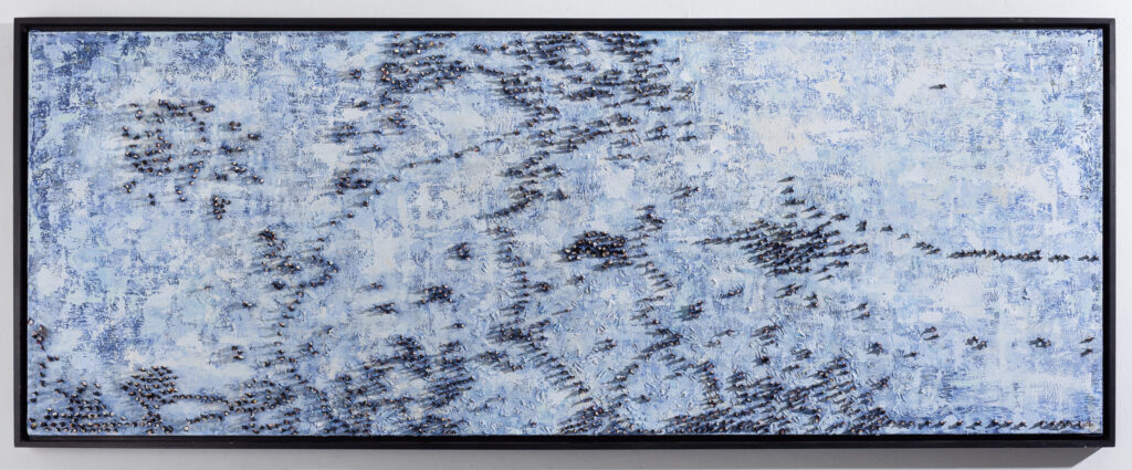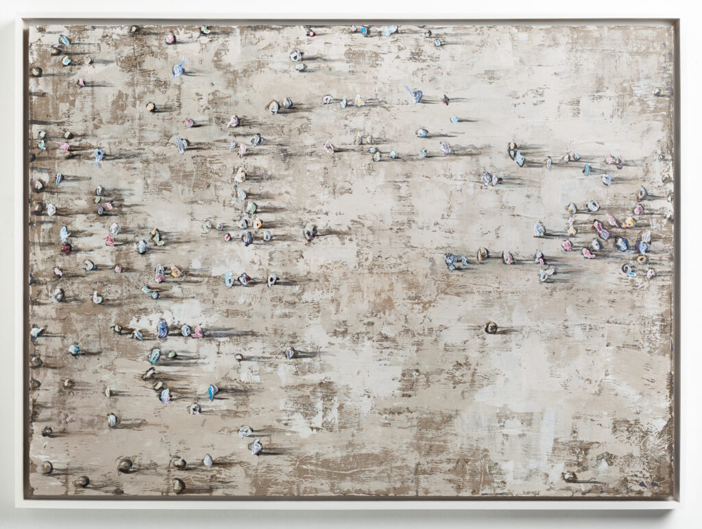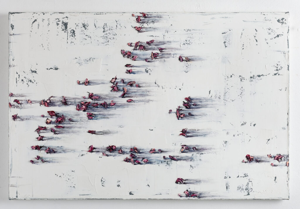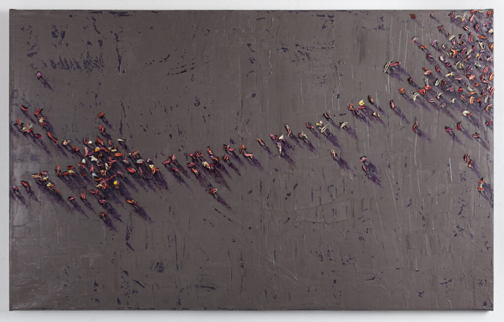 Mr.Merab Surviladze creates the original version of abstract painting which is conceptually based on the metaphor of shadow and its artistic-philosophical reading. Mini sculptures ‘raised’ from the canvas differ by size and scale: in some cases they resemble the groups of manikins and in other ones they are like cosmic bodies thrown away by elemental force. Chaos and spontaneous movement reveal as a principal motif expressed in various formats or intensiveness. Expressive art by Merab Surviladze represents as a sort of enigma impressing viewers with its unpredictable visual and special technical manner.